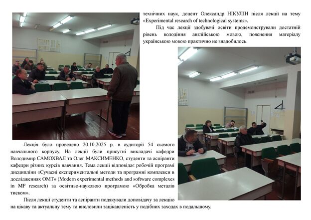 Відкрита лекція на тему: «Experimental research of technological systems» (англійською мовою)