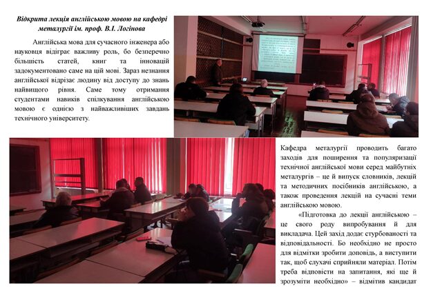 Гостьова лекція на кафедрі металургії ім. професора В.І. Логінова