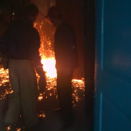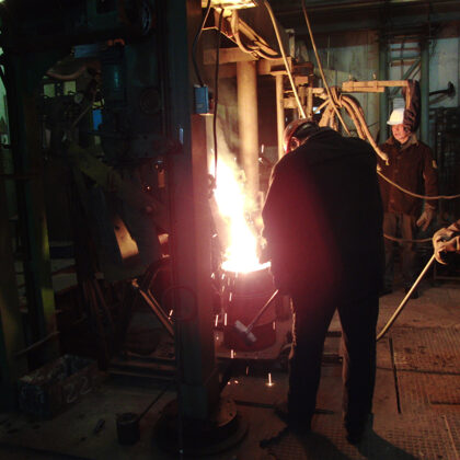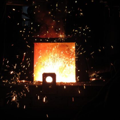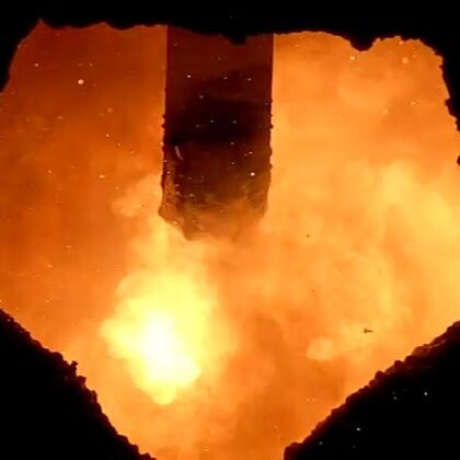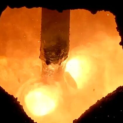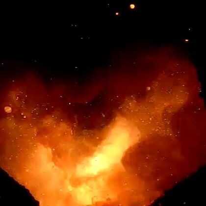 Швидкісна зйомка процесу декарбонізації залізовуглецевого розплаву з використанням двоярусної кисневої фурми. Представлено стан шлакометалевої емульсії на різних етапах продувки розплаву.